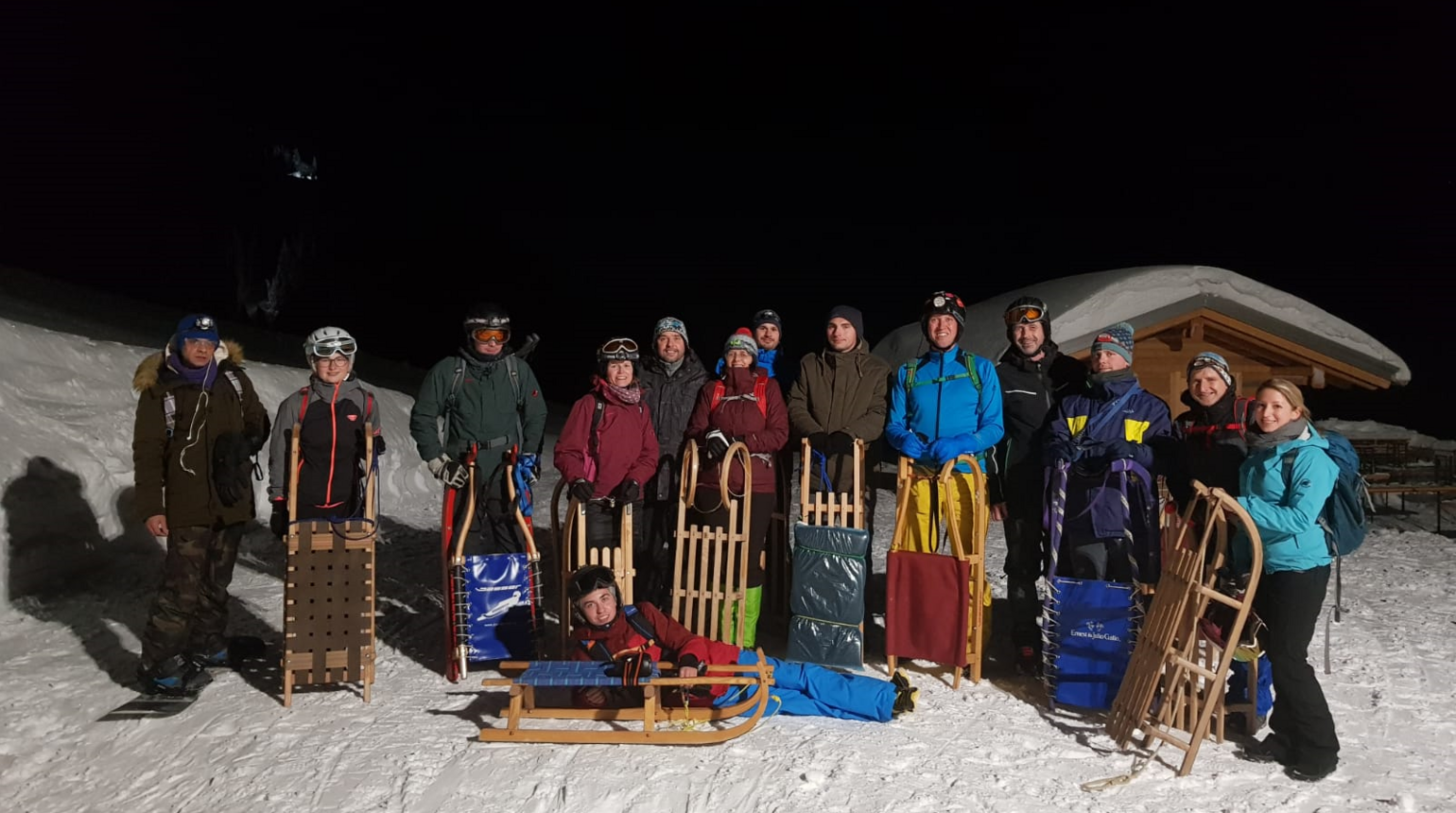 Gemeinsamer Wintersport im verschneiten Allgäu: Mayser-Kollegen und Kolleginnen des Standorts Lindenberg treffen sich in den Wintermonaten zum gelegentlichen abendlichen Rodelvergnügen. In ordentlichem Tempo geht es dann mit Stirnlampe, Helm, Rodelmontur und einer Portion guten Mutes im Dunkeln den Imberg hinab.