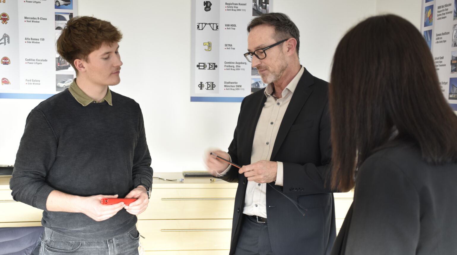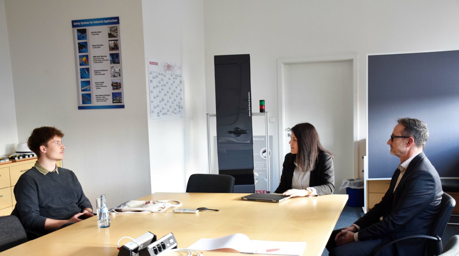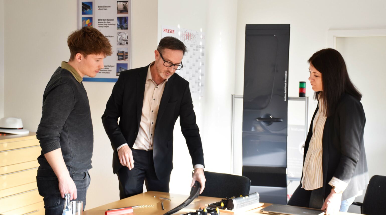 Janis Fetzer aus Gingen an der Fils studiert Wirtschaftsingenieurwesen an der HNU im Ulmer Modell und wird seit Oktober 2023 im Rahmen des Deutschlandstipendiats von Mayser gefördert. Nach dem ersten Kennenlernen mit HR-Leiter Winfried Wanka anlässlich der Urkundenübergabe im Vöhlinschloss in Illertissen am 19.10.2023 hat Janis Anfang Februar den Ulmer Standort des Unternehmens besucht.