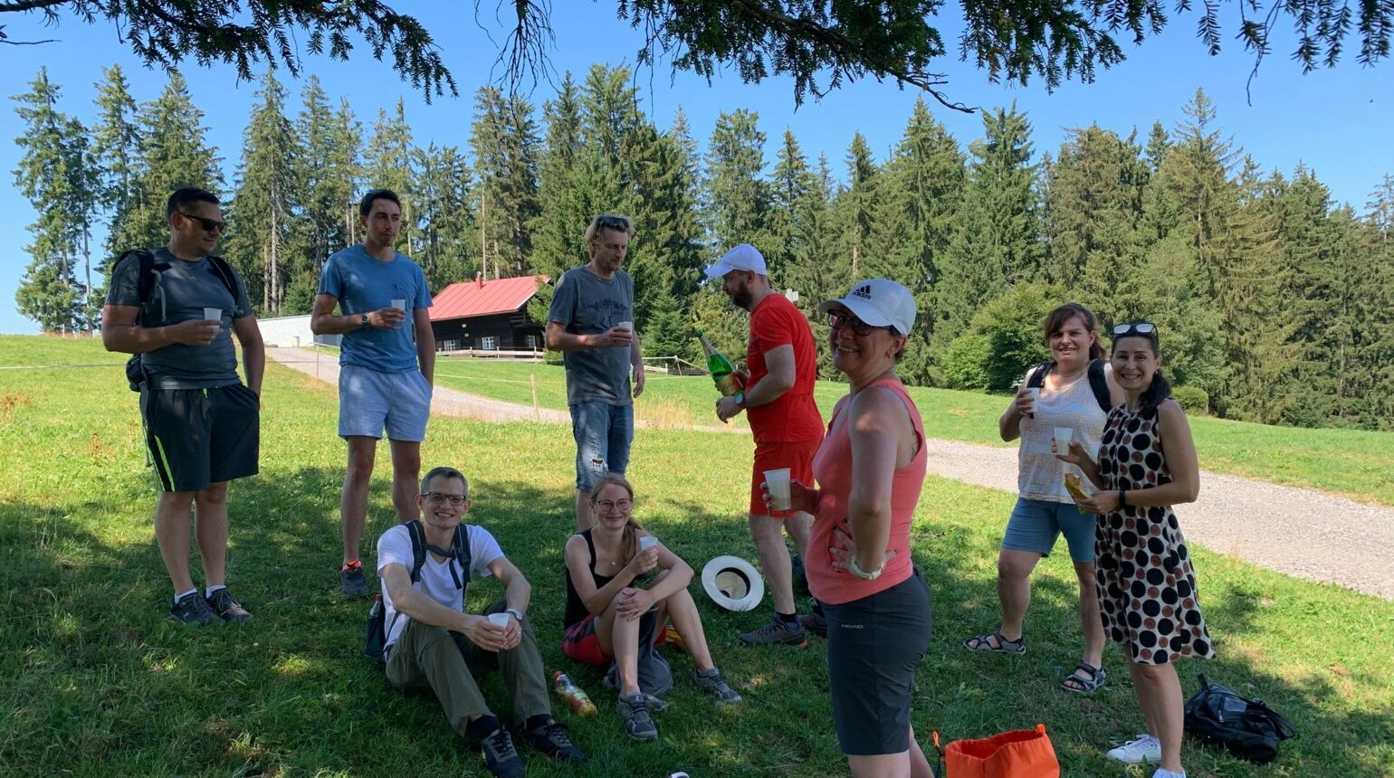 Dass Lindenberg auch abseits der Arbeit einiges zu bieten hat, ist nicht nur den Beschäftigten des dortigen Mayser-Standorts bewusst. Bei der Sommeraktion am 22. Juli 2022 war Gelegenheit, das schöne Allgäu und einen traumhaften Blick auf den Bodensee bei Kaiserwetter im Kreis der Kolleg*innen zu genießen. Egal ob die Höhenmeter zu Fuß, mit dem Fahrrad oder auch kurvenreich mit dem PKW zurückgelegt wurden: Ziel war für alle der Fesslerhof auf dem Pfänderrücken.
