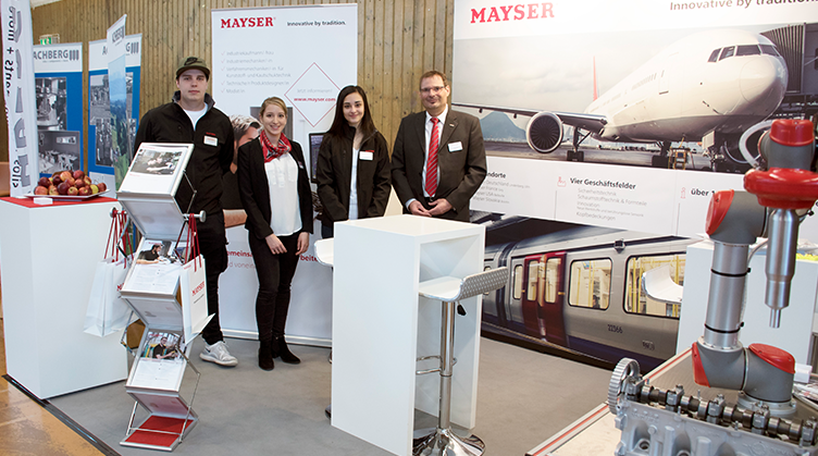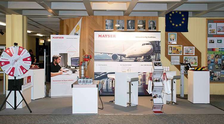 This year for the first time, Mayser will be attending the “zukunftswangen” fair hosted at the centre for vocational training in Wangen. Thanks to this addition to their schedule, the company is now presenting at two of the region’s most important fairs for training in technical occupations. Mayser has already been a staple at the “career info fair” in Lindenberg since 2005 – this year taking the wraps off a new booth concept including robot.r.