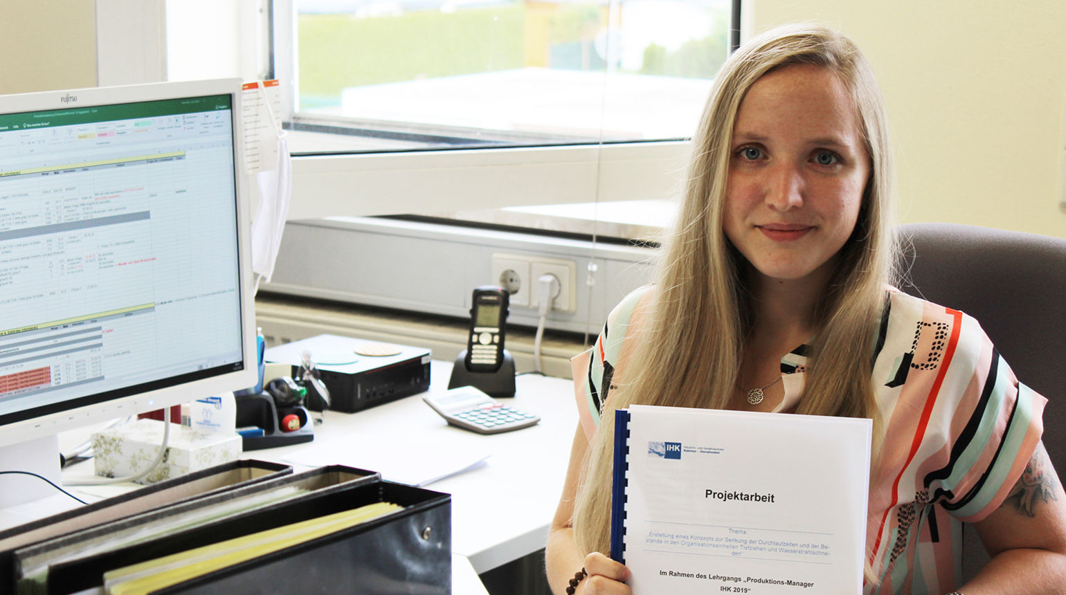 The company provided support in the form of a laptop computer for the project, financial aid, and educational leave for participation in the instructional units of the training measure. Her colleague Michael Dietrich from Lean Management also assisted her in finding and formulating her topic.