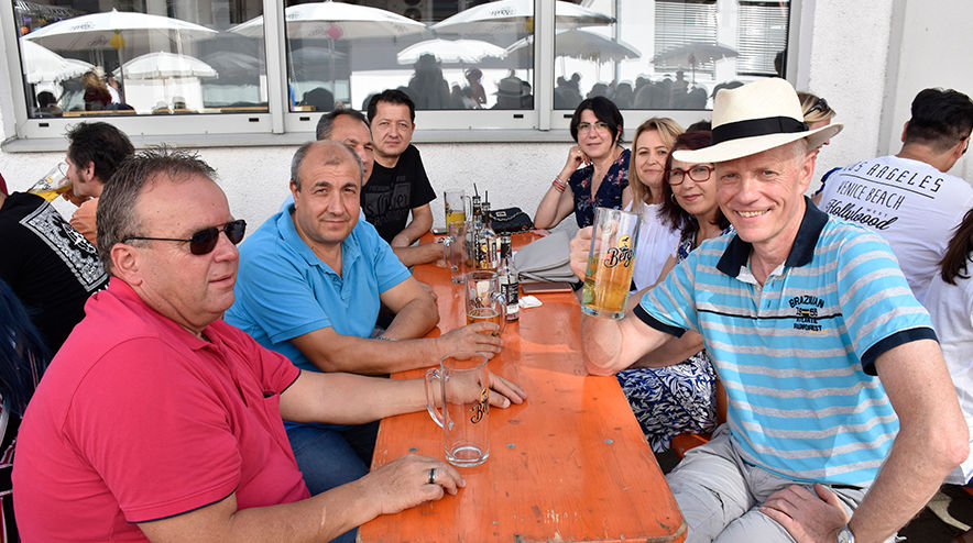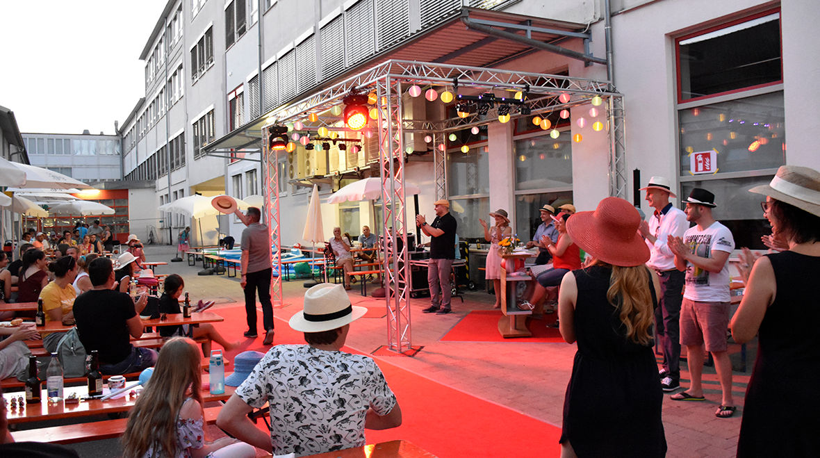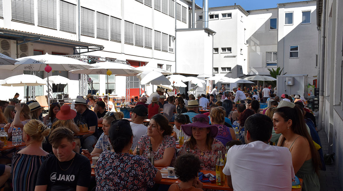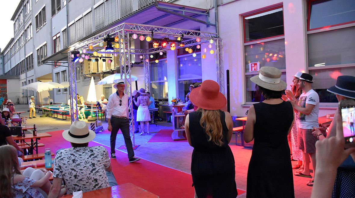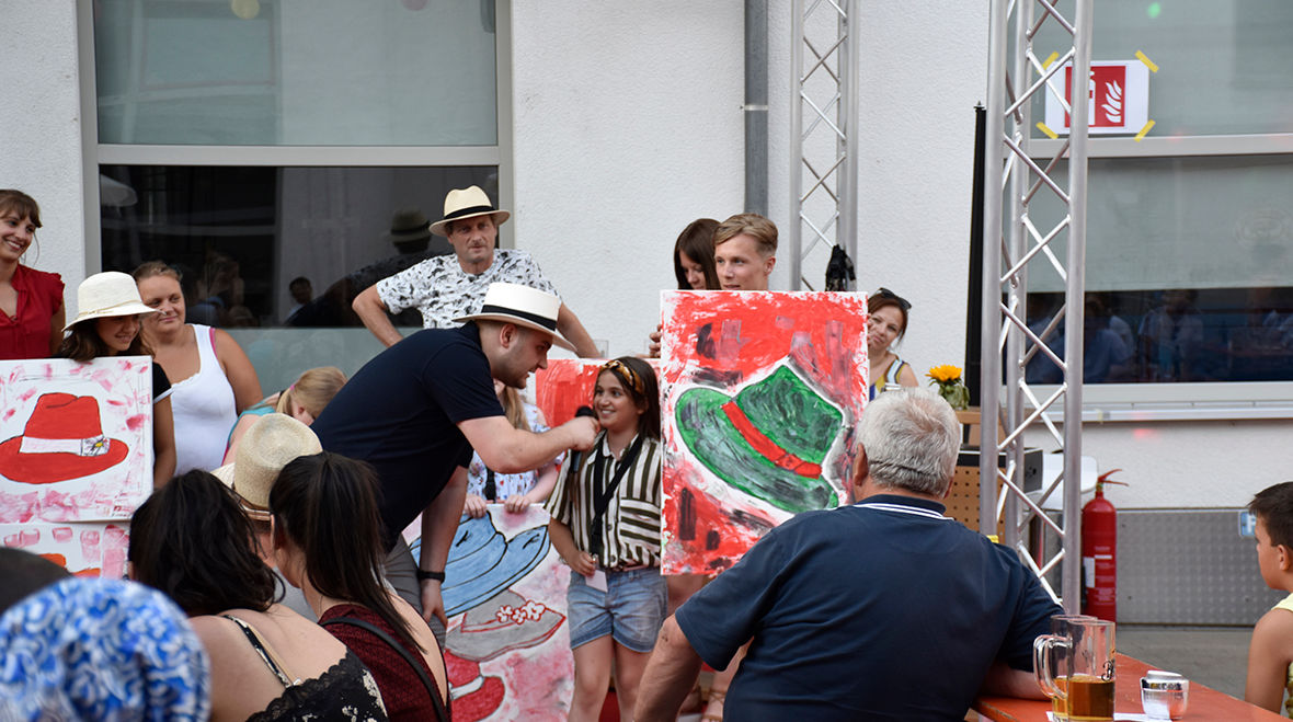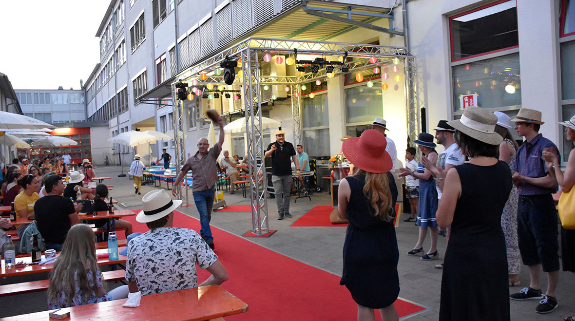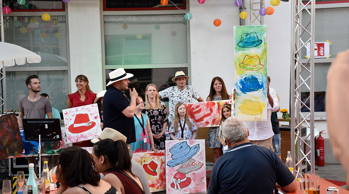 For the first time Mayser welcomed the guests with both “Willkommen” and “Bienvenue” – Mayser employees from France accepted the invitation to the summer party this year to become acquainted with the Ulm location and their fellow employees at both German locations. Not only different nationalities, but also different generations, celebrated together: The active employees were joined by Mayser retirees and the company’s future apprentices, who will start their training at Mayser in September. Together they enjoyed the party under the theme of the “hat” – in memory of the fact that the company was founded as the hat manufacturing company “Hutmacherey Mayser”.